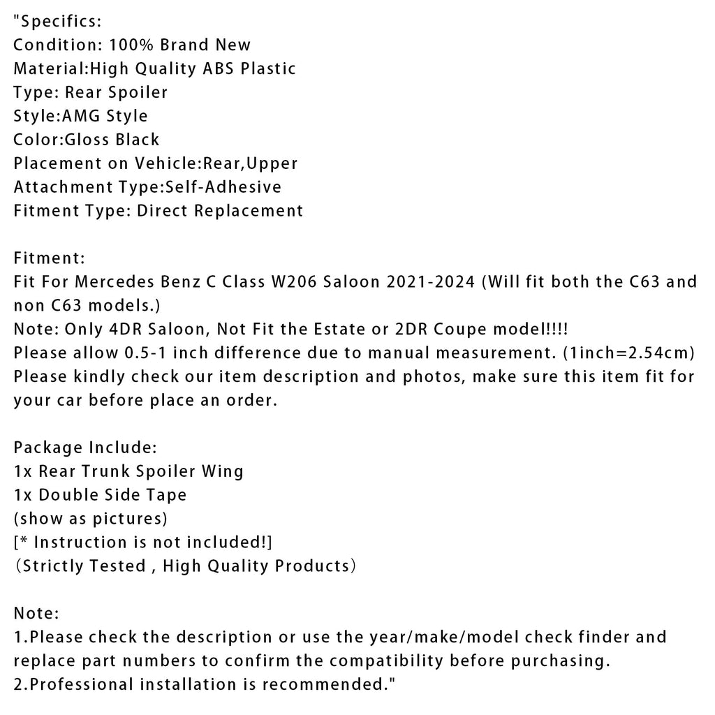 Fit For Mercedes Benz C Class W206 Saloon 2021-2024 (Will fit both the C63 and non C63 models.)