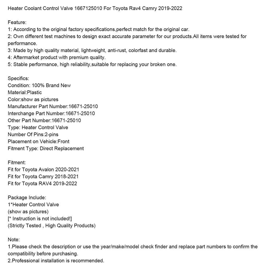 Heizungskühlmittel-Regelventil 1667125010 für Toyota Rav4 Camry 2019-2022