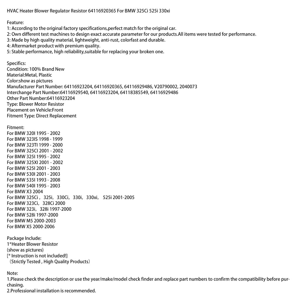 HVAC Heizung Gebläse Regler Widerstand 64116920365 Für BMW 325Ci 525i 330xi