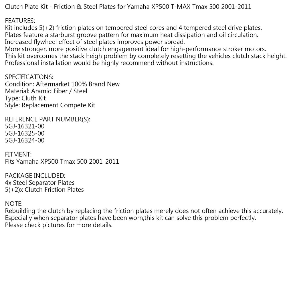 Juego de discos de embrague - discos de fricción y de acero para Yamaha XP500 T-MAX Tmax 500 2001-2011