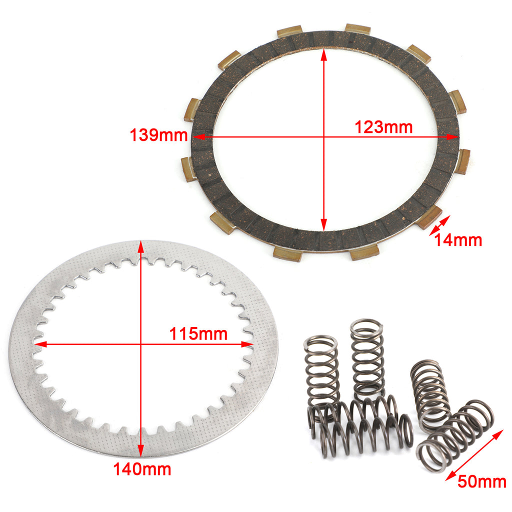 El kit incluye 9 discos de fricción sobre núcleos de acero endurecido y 8 placas impulsoras de acero endurecido.
