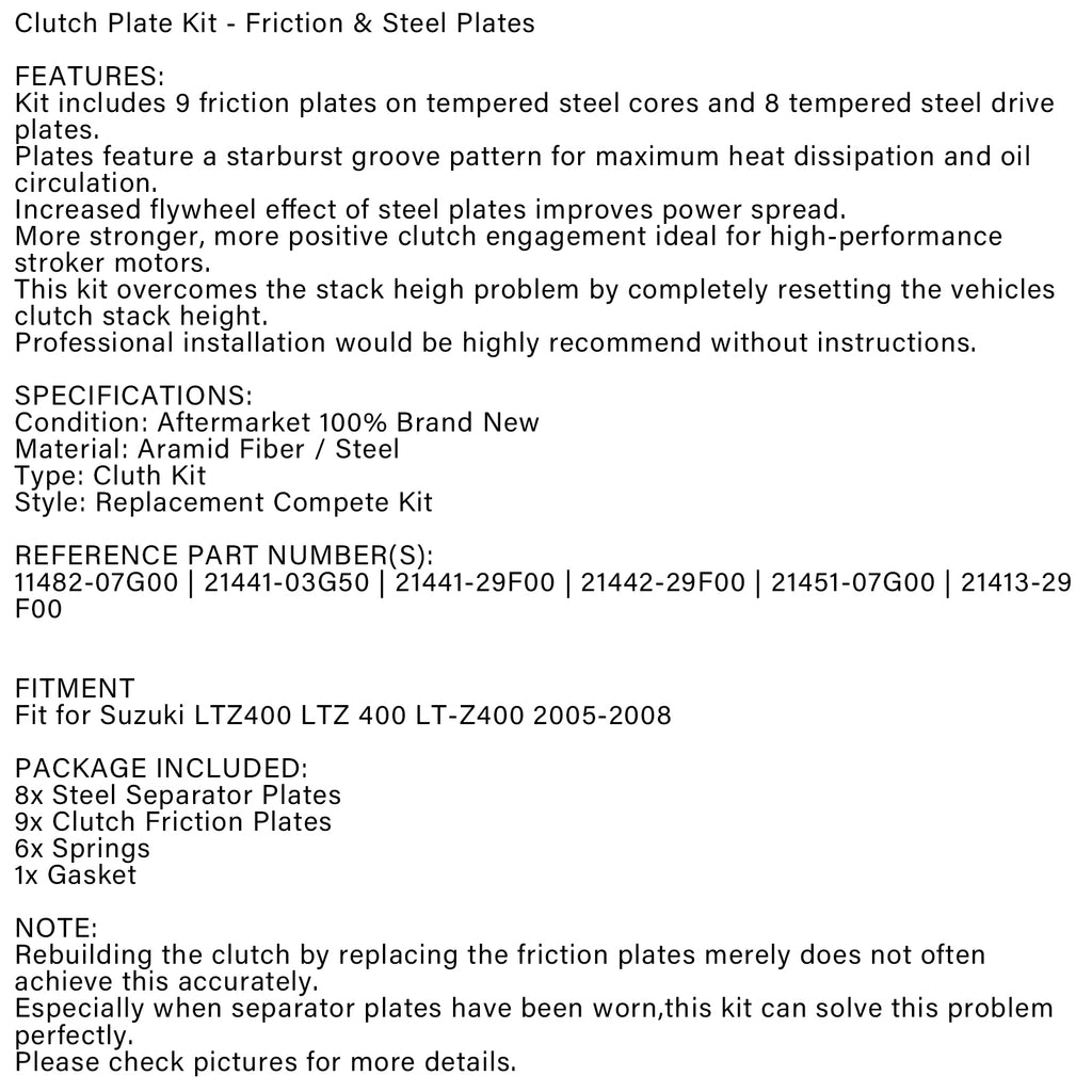 Adecuado para Suzuki LTZ400 LTZ 400 LT-Z400 2005-2008.
