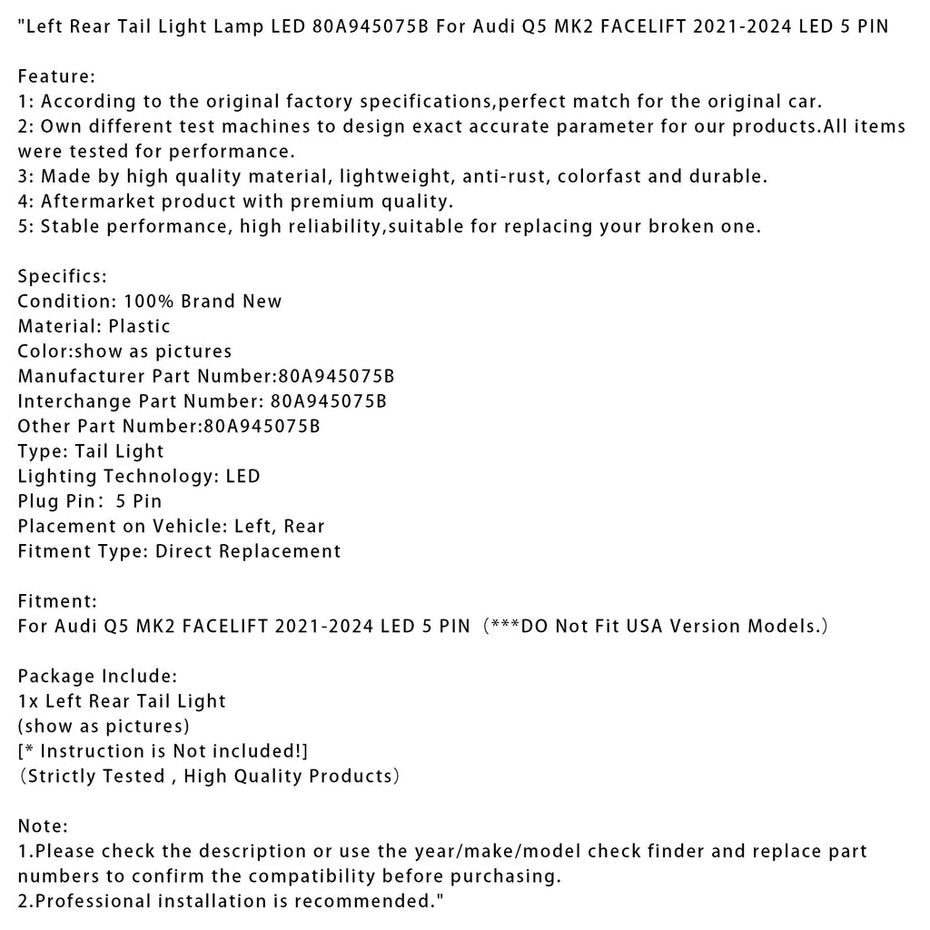 Für Audi Q5 MK2 Facelift 2021-2024 LED 5-PIN (***Nicht passend für US-Versionen.)