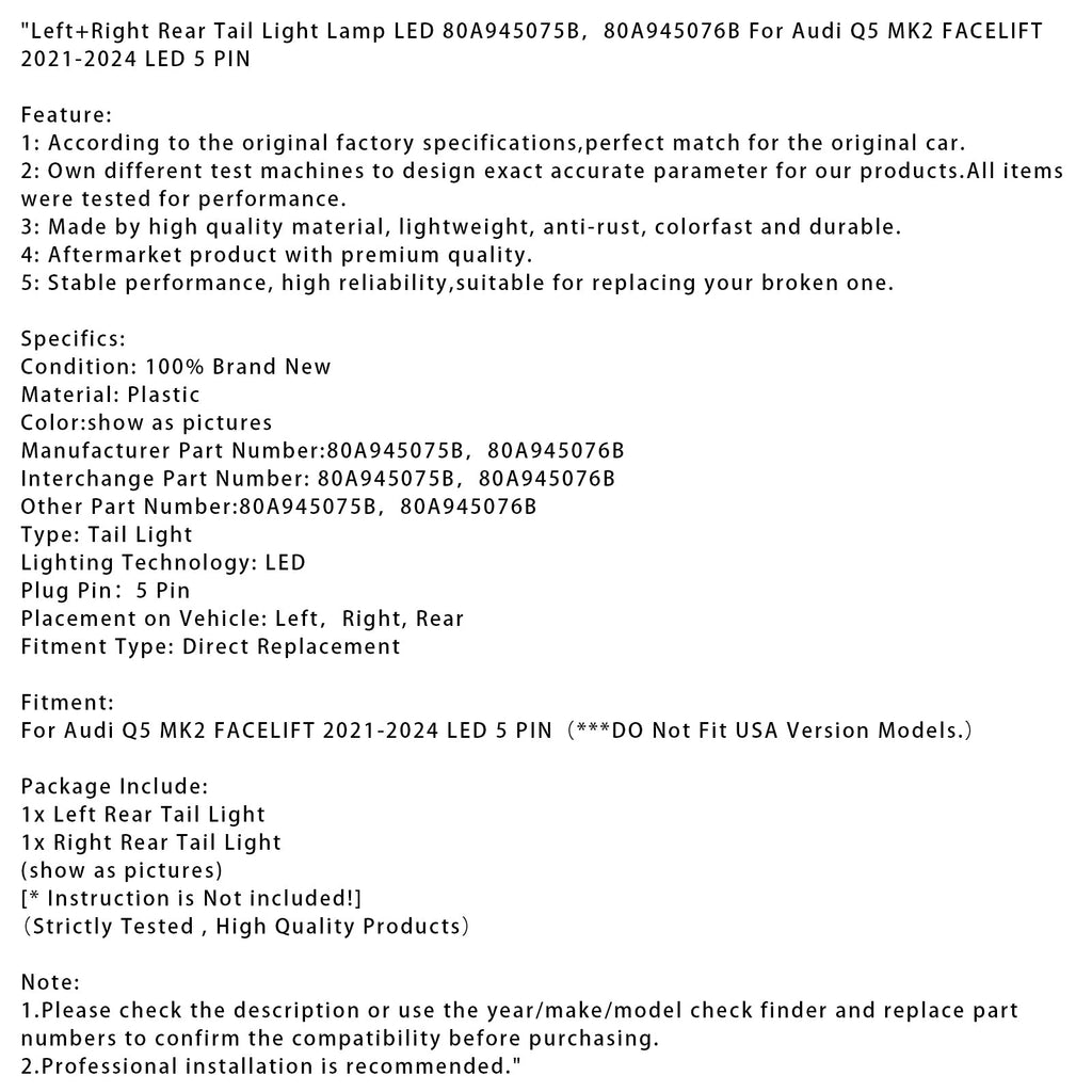 Rücklicht links + rechts LED 80A945075B, 80A945076B passend für Audi Q5 MK2 Facelift 2021–2024, 5-polig