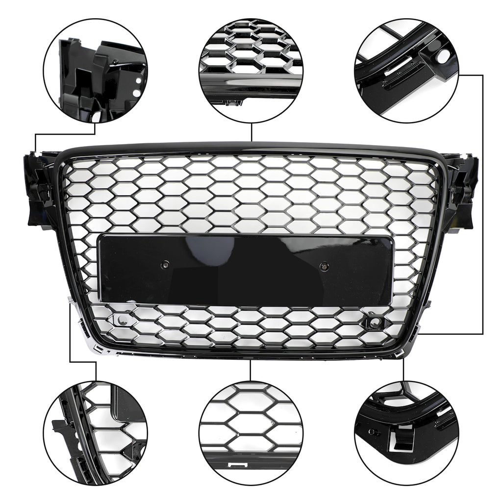 Parrilla delantera deportiva con patrón de panal estilo RS4, compatible con Audi A4 S4 B8 2009-2012