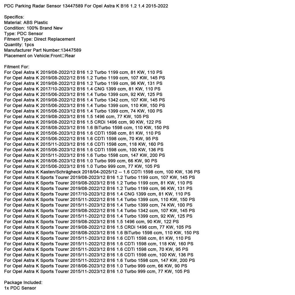 PDC Parkplatz Radar Sensor 13447589 Für Opel Astra K B16 1,2 1,4 2015-2022