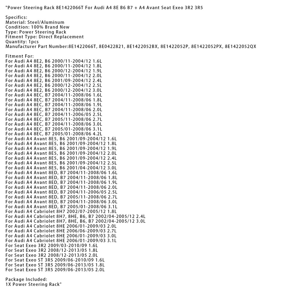 Servolenkung Rack 8E1422066T Für Audi A4 8E B6 B7 + A4 Avant Seat Exeo 3R2 3R5