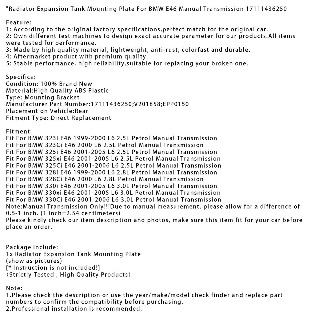 Montageplatte für Ausgleichsbehälter für BMW E46 Schaltgetriebe 17111436250