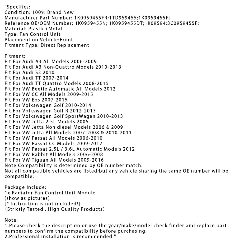 Kühlerlüfter-Steuermodul für VW Golf Jetta Passat Audi A3 TT 1K0959455FR