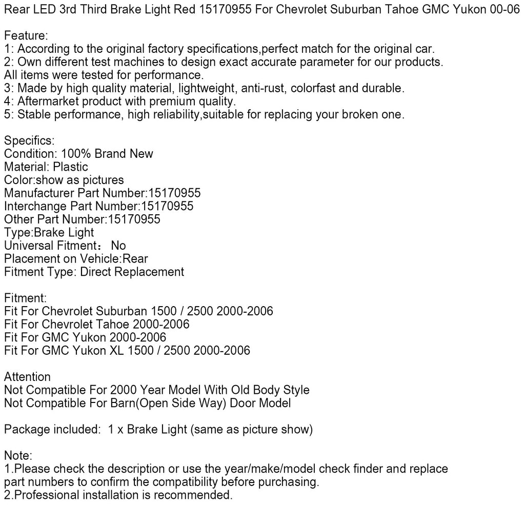 Dritte LED-Bremsleuchte hinten, rot, Teilenummer 15170955, passend für Chevrolet Suburban, Tahoe und GMC Yukon (Baujahre 2000–2006)