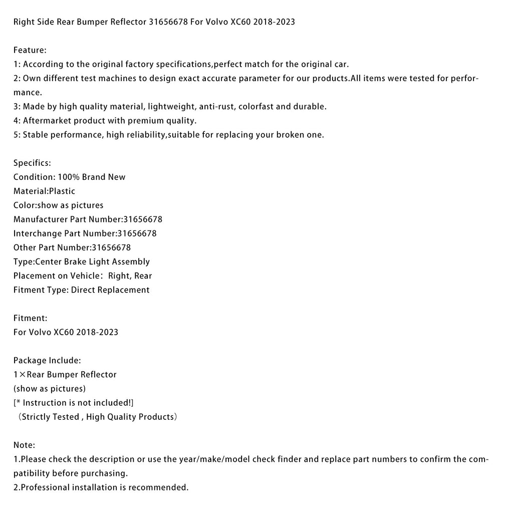 Rechter hinterer Stoßstangenreflektor 31656678 Passend für Volvo XC60 2018-2023