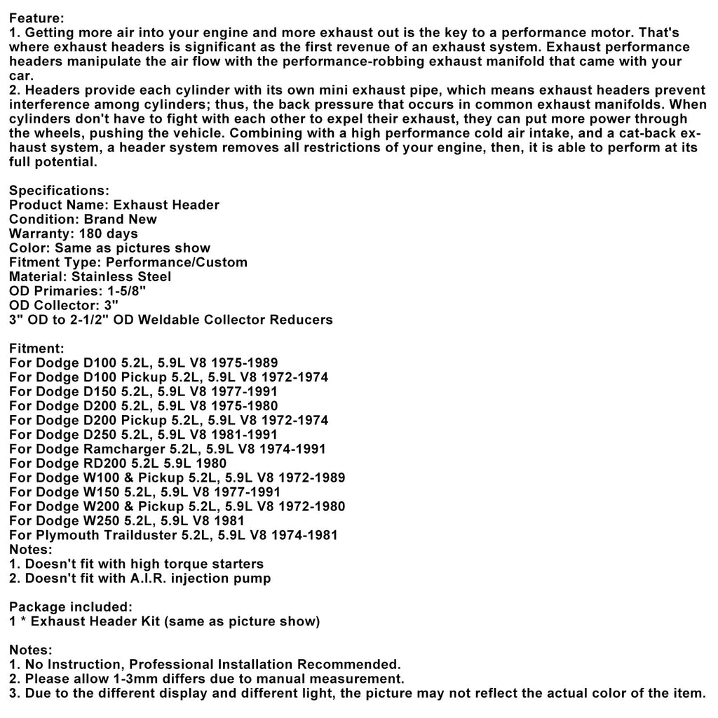 Für Dodge W250 5,2 l, 5,9 l V8 1981