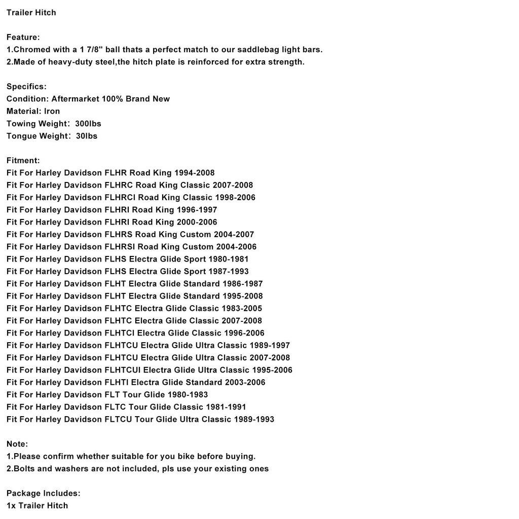 Anhängerkupplungskugel passend für Electra Road King Glide FLTR FLHS FLHT 1994-2008
