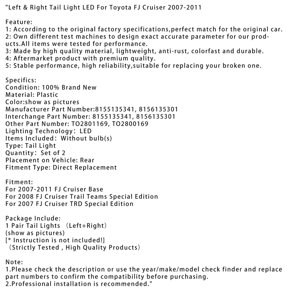 Vasen ja oikea takavalo LED Toyota FJ Cruiser 2007-2011