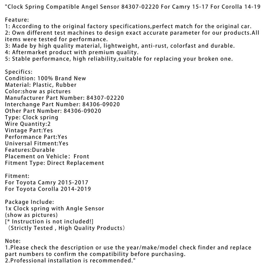Kellojousen kanssa yhteensopiva kulma-anturi 84307-02220 Camry 15-17:lle Corolla 14-19:lle