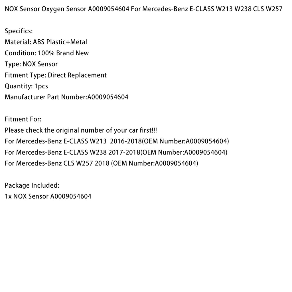 NOX-Sensor Sauerstoffsensor A0009054604 Passend für Mercedes-Benz E-Klasse W213 W238 CLS W257