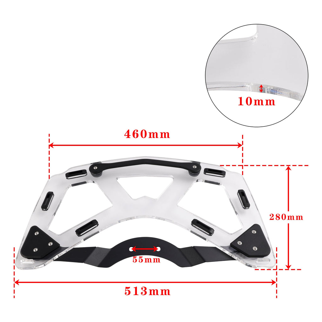 10 mm:n akryylilasinen tavarateline yläkotelossa. Sopii BMW K1600 GT/GTL/GTL Exclusive 2011-2023 -malleihin.