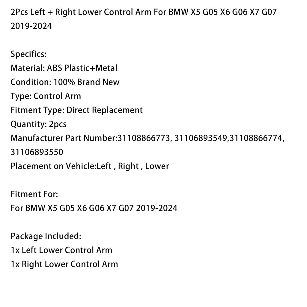 2 Stück linker + rechter unterer Querlenker passend für BMW X5 G05, X6 G06, X7 G07 2019-2024