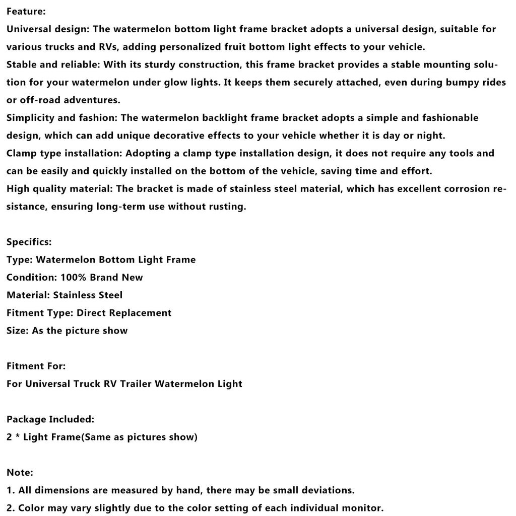 Universelles Design: Die Halterung für den Wassermelonen-Unterlichtrahmen verfügt über ein universelles Design, das für verschiedene LKWs und Wohnmobile geeignet ist und Ihrem Fahrzeug personalisierte Frucht-Unterlichteffekte verleiht.