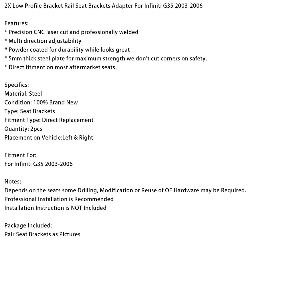 2x Flache Sitzschienen-Adapter für Infiniti G35 2003-2006