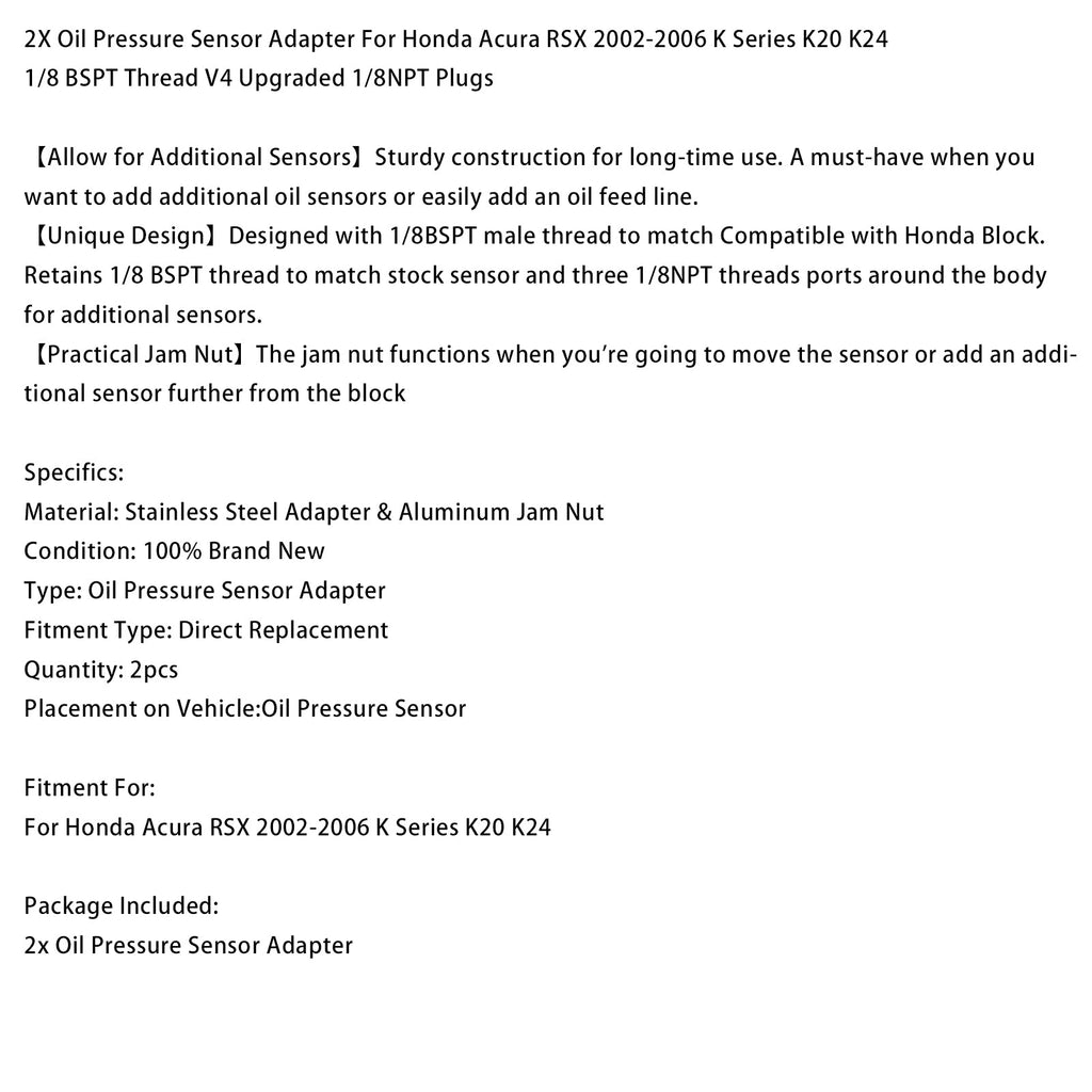 2x Öldrucksensor-Adapter für Honda Acura RSX 2002-2006 K-Serie K20 K24