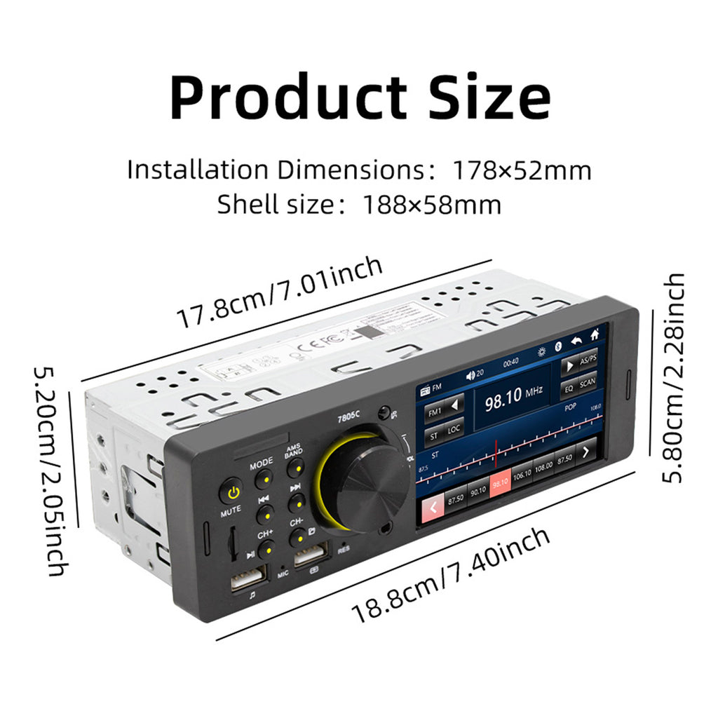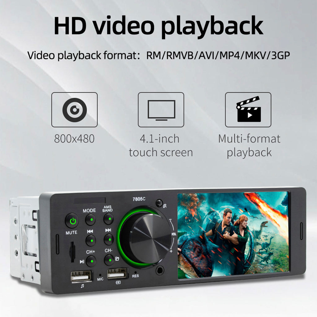4,1" yhden DIN-autosoitin FM-stereoradio Bluetooth USB MP5 MP3 kosketusnäyttö Audio Video TF-kortti Bluetooth FM-radion tuki Carema