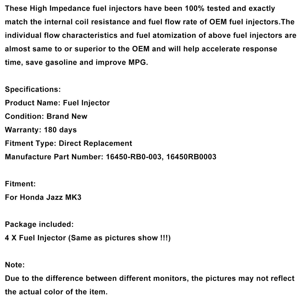 4PCS Kraftstoff Injektor 16450-RB0-003 Fit Honda Jazz MK3 Benzin 16450RB0003