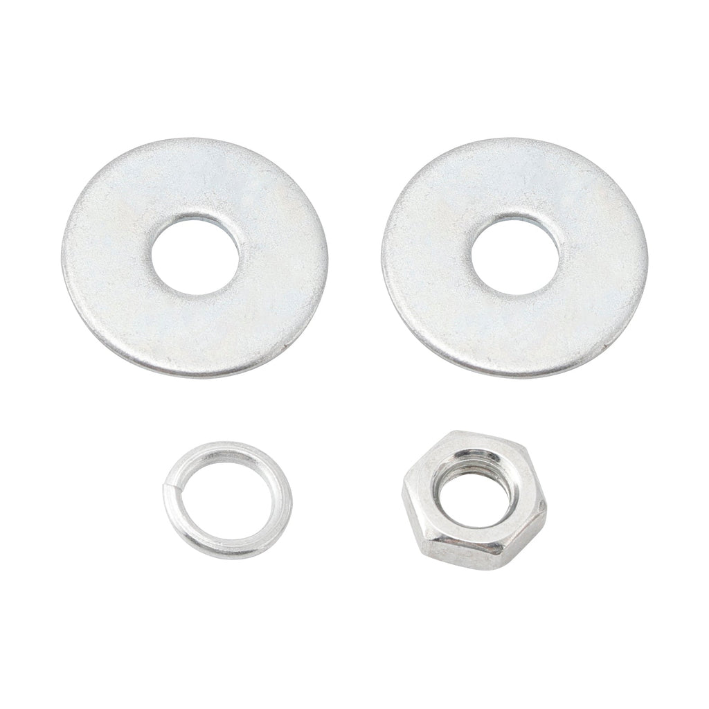 Satz mit 4 Schrauben, inkl. Unterlegscheiben, Muttern und Sicherungsringen gegen Abrollen.
