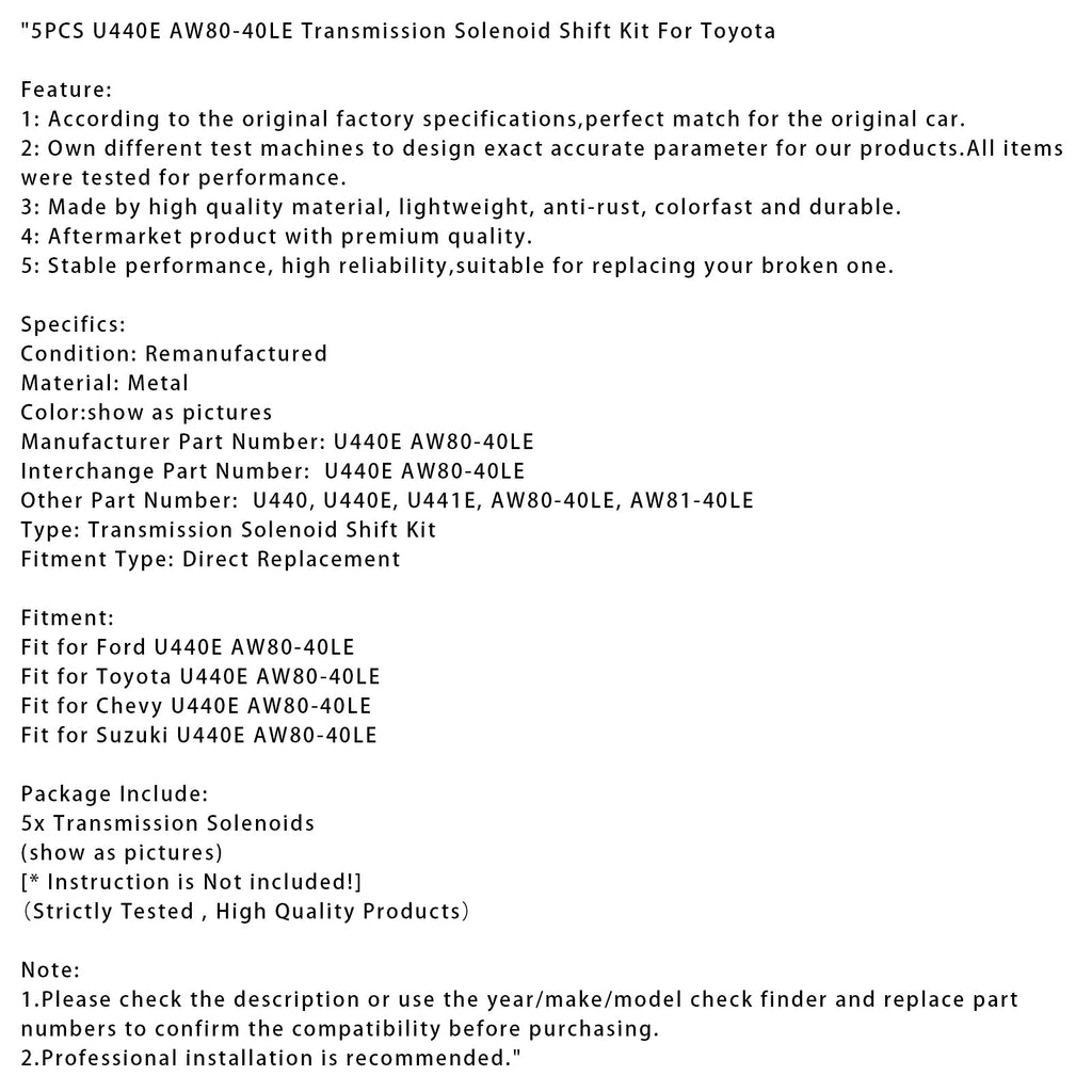 5-teiliges U440E AW80-40LE Getriebemagnet-Schaltkit für Toyota