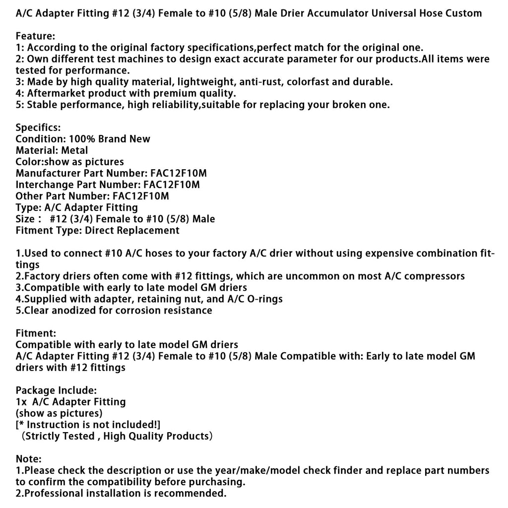 1. Wird verwendet, um #10 A/C-Schläuche an Ihren Fabrik-A/C-Trockner anzuschließen, ohne teure Kombinationsarmaturen zu verwenden