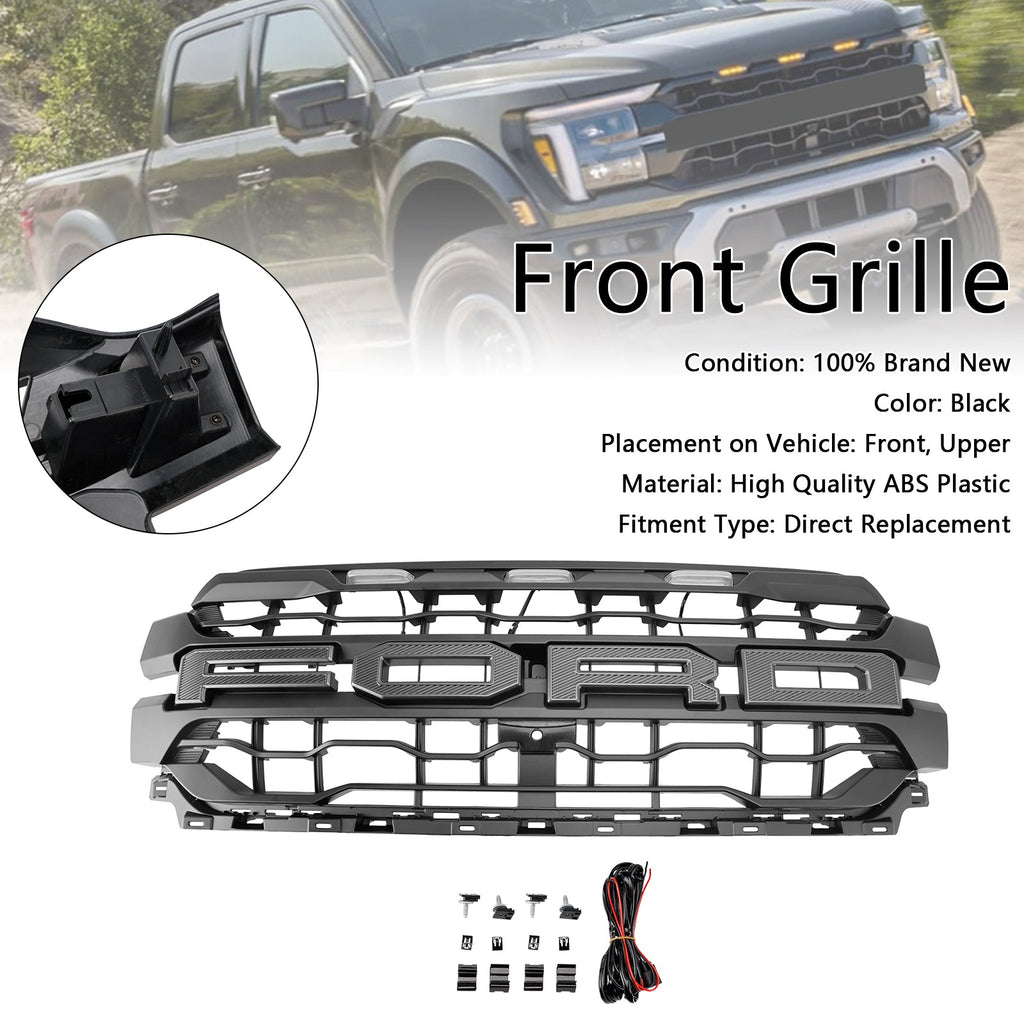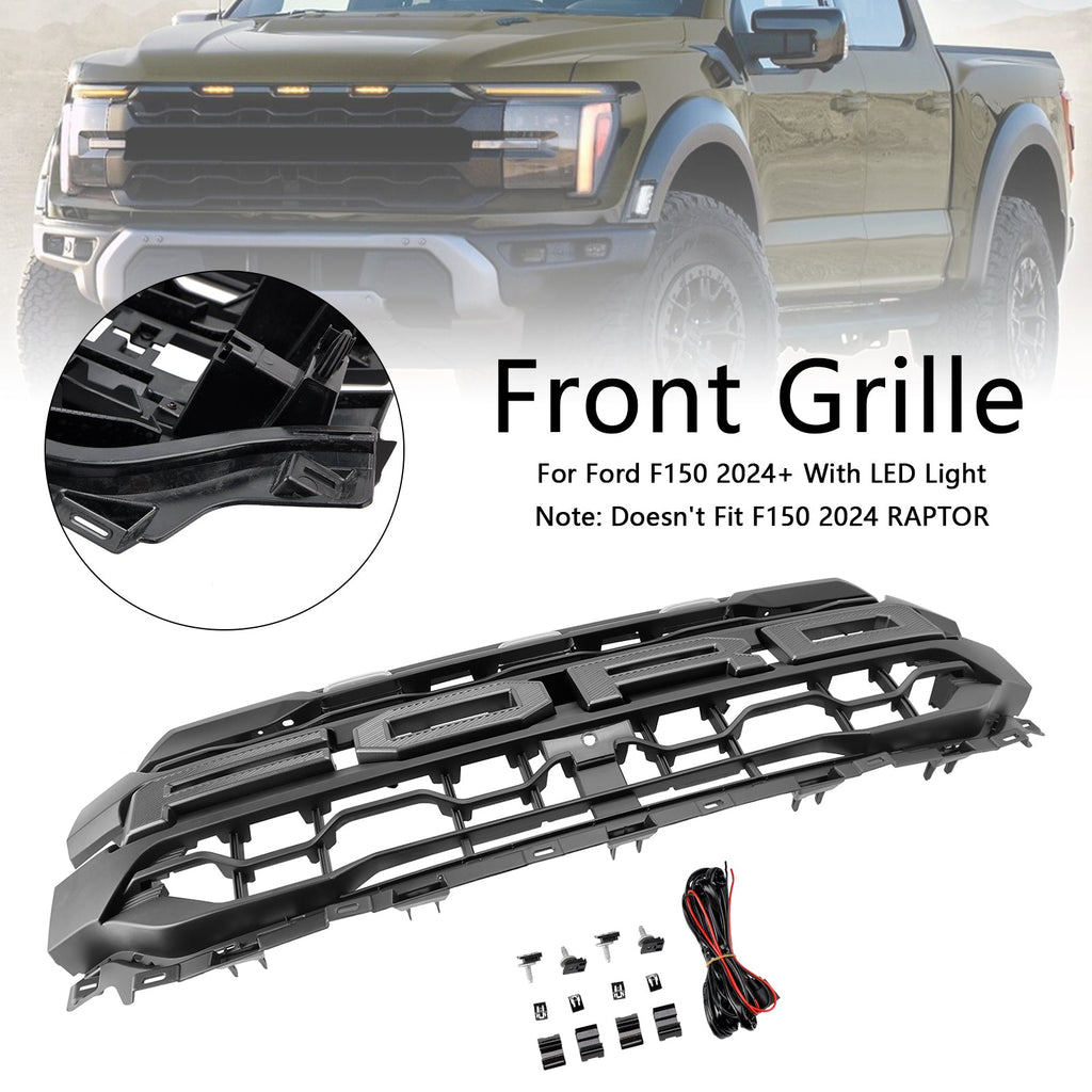 Schwarzer Frontgrill für die Stoßstange, passend für Ford F150 2024+, mit LED