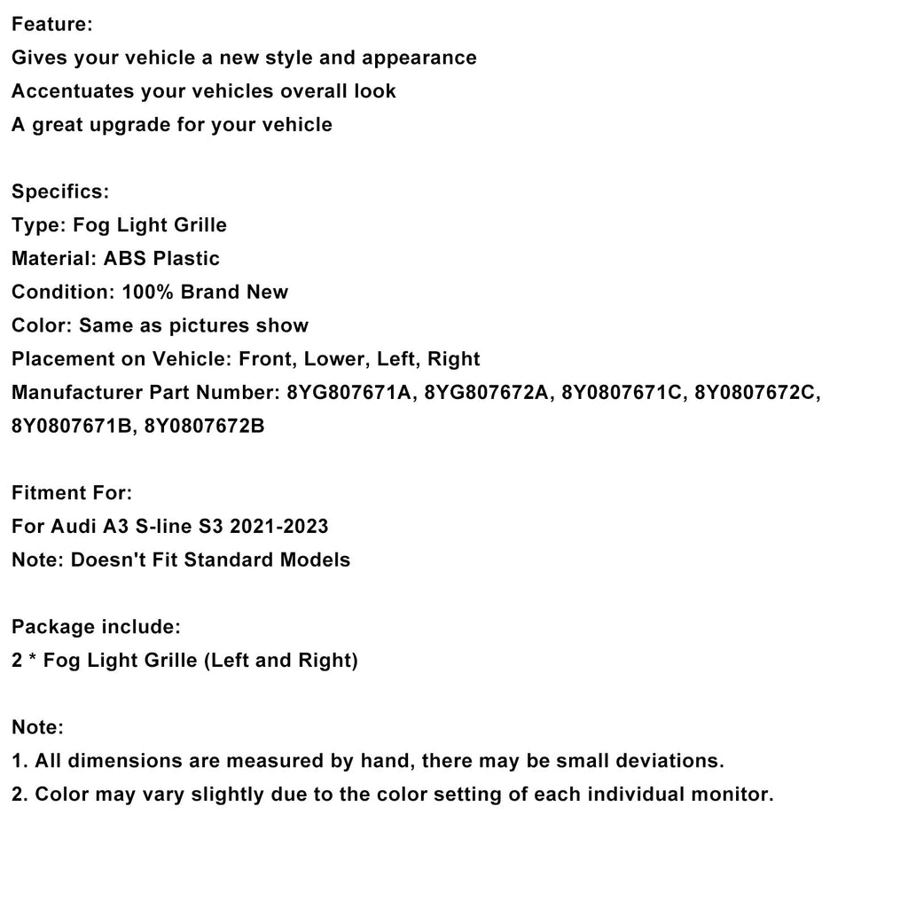 Schwarze Wabengitter-Nebelscheinwerferabdeckung passend für Audi A3 S-line 2021-2023
