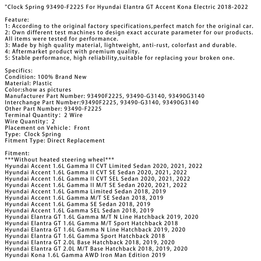 Kellojousi 93490-F2225 Hyundai Elantra GT Accent Kona Electricille 2018-2022