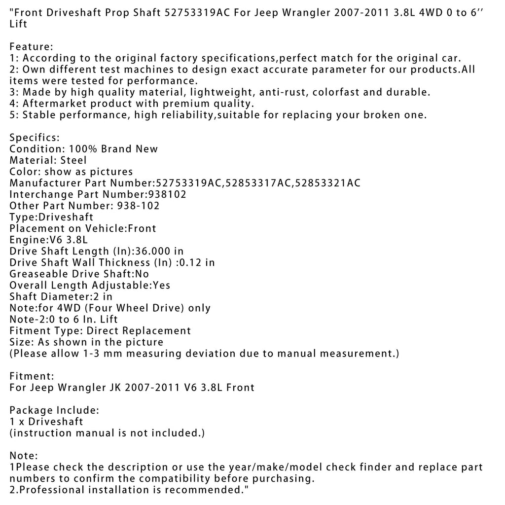 Etuvetoakselin kardaani 52753319AC Jeep Wrangler 2007-2011 3.8L 4WD 0 - 6 '' nostokorkeus