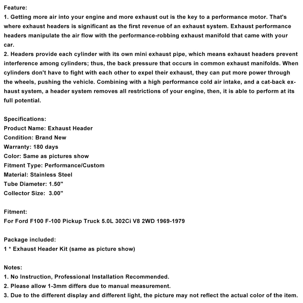 Für Ford F100 F-100 Pickup Truck 5.0L 302Ci V8 2WD 1969-1979