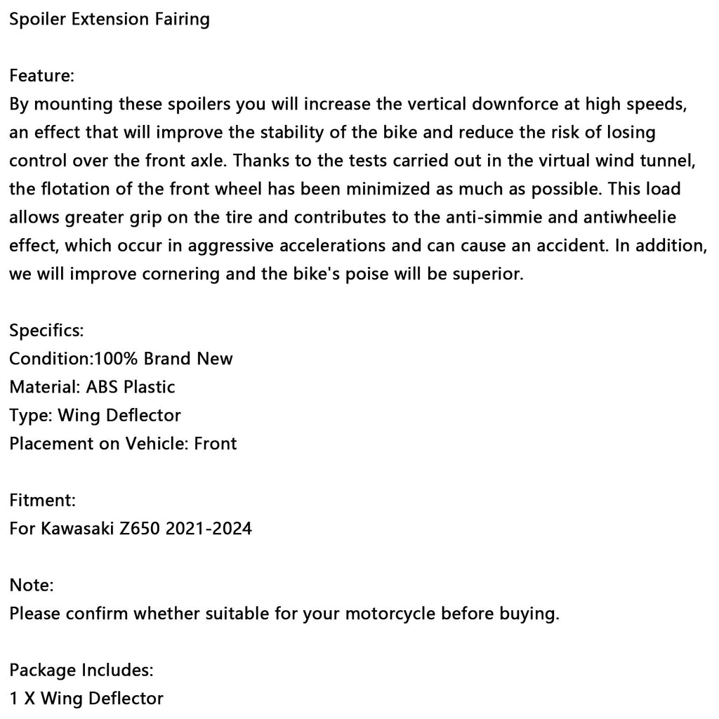 Etuosan Downforce-spoilerin jatkokate Kawasaki Z650 2021-2024 hiilikuituun