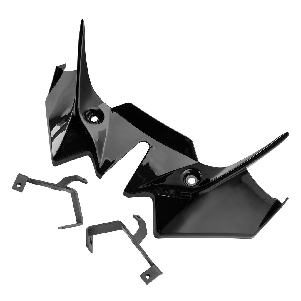 Asentamalla nämä spoilerit lisäät pystysuoraa downforcea suurilla nopeuksilla. Tämä parantaa moottoripyörän vakautta ja vähentää etuakselin hallinnan menettämisen riskiä. Virtuaalisessa tuulitunnelissa tehtyjen testien ansiosta etupyörän nostovoima minimoitiin mahdollisimman paljon. Tämä kuormitus parantaa renkaan pitoa ja edistää kovassa kiihdytyksessä esiintyvää etupyörähdyksen ja -piikin estoa, joka voi johtaa onnettomuuksiin. Lisäksi parannamme kaarreajo-ominaisuuksia ja moottoripyörän vakautta.