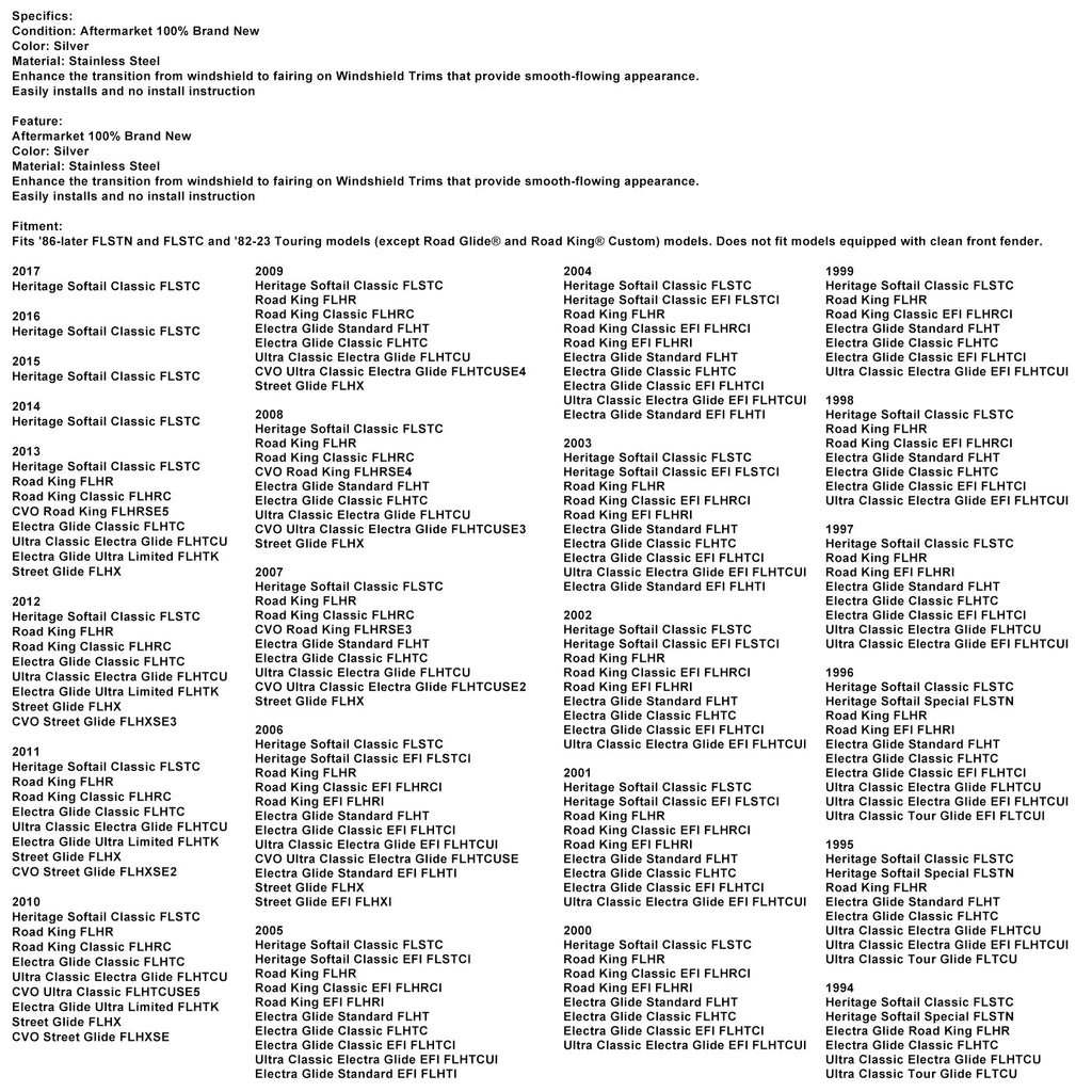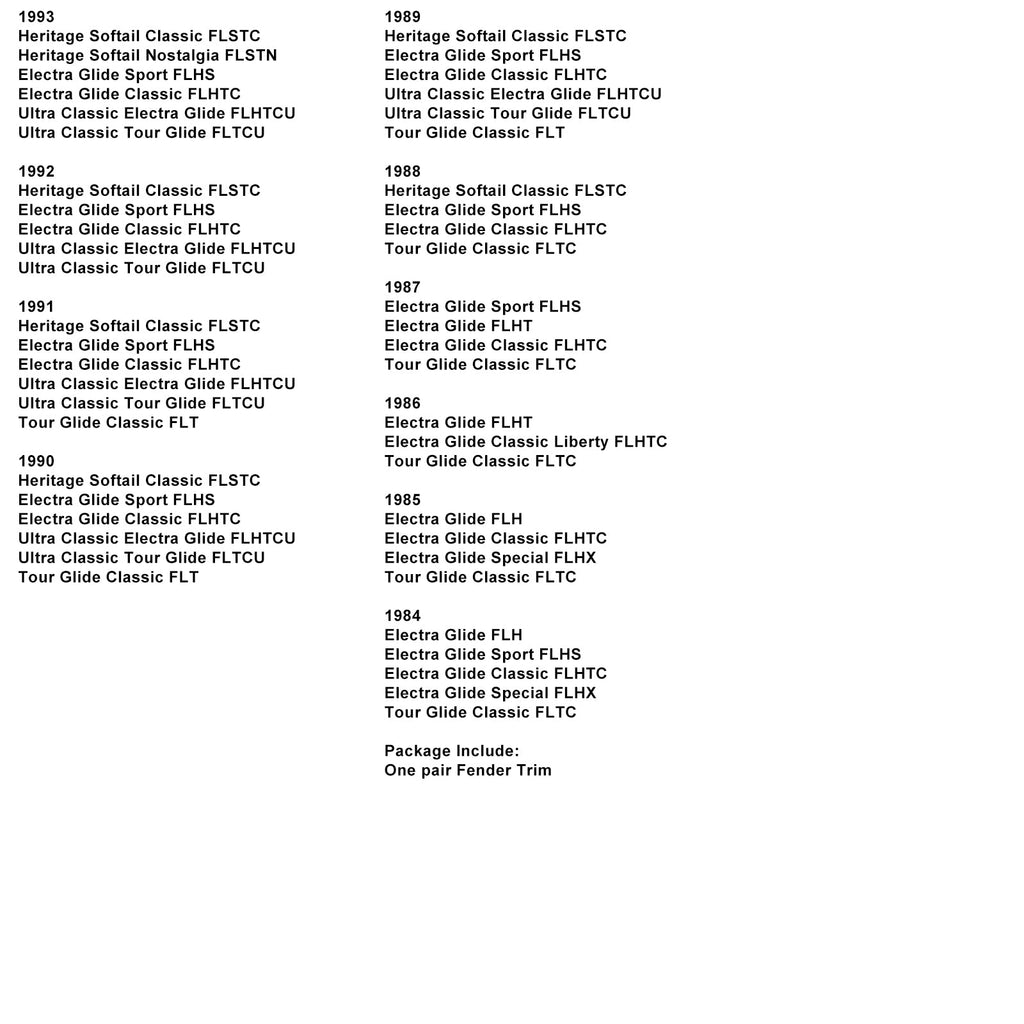 Passend für FLSTN und FLSTC ab '86 sowie Touring-Modelle '82-23 (außer Road Glide® und Road King® Custom). Nicht für Modelle mit glattem Frontkotflügel.