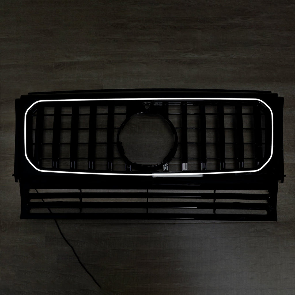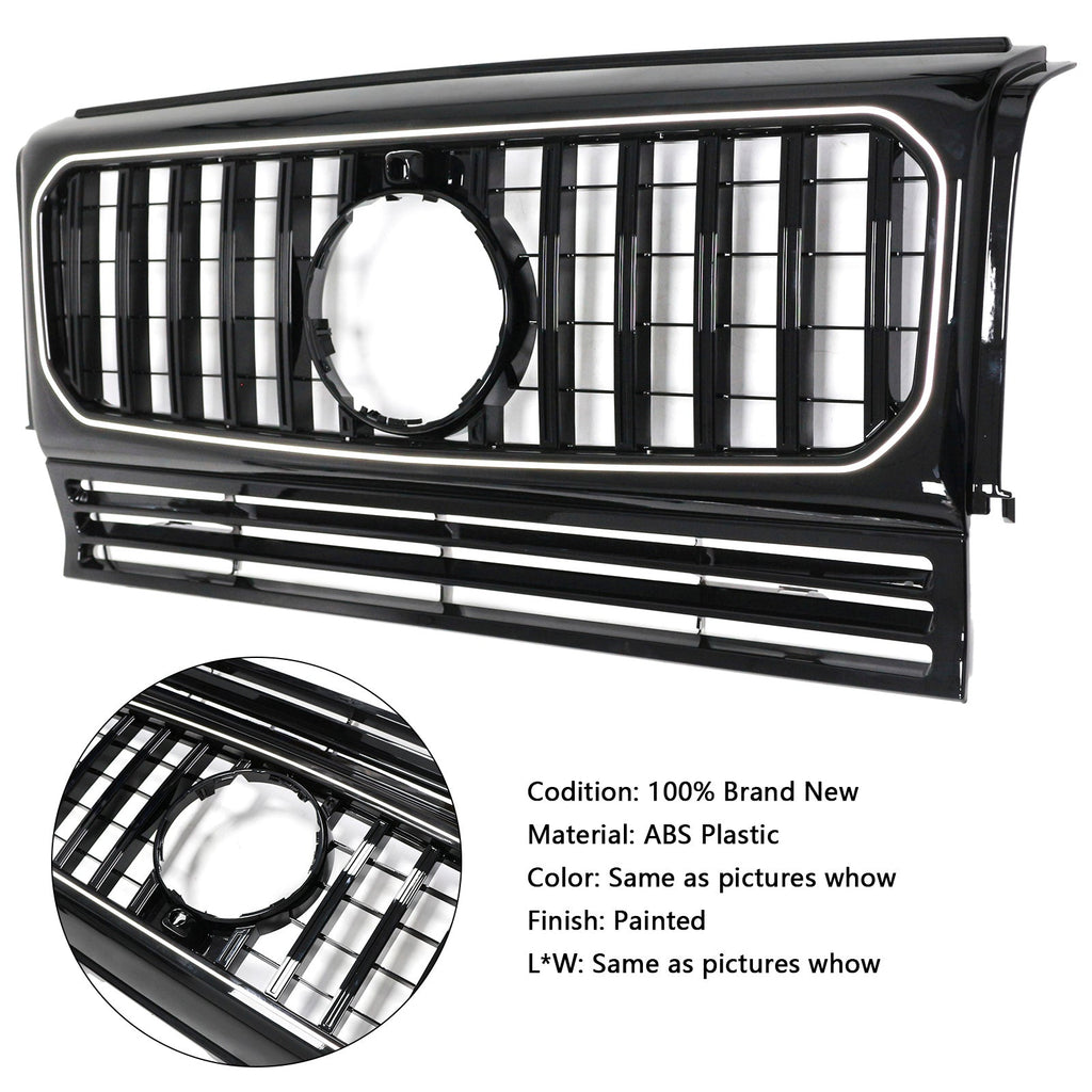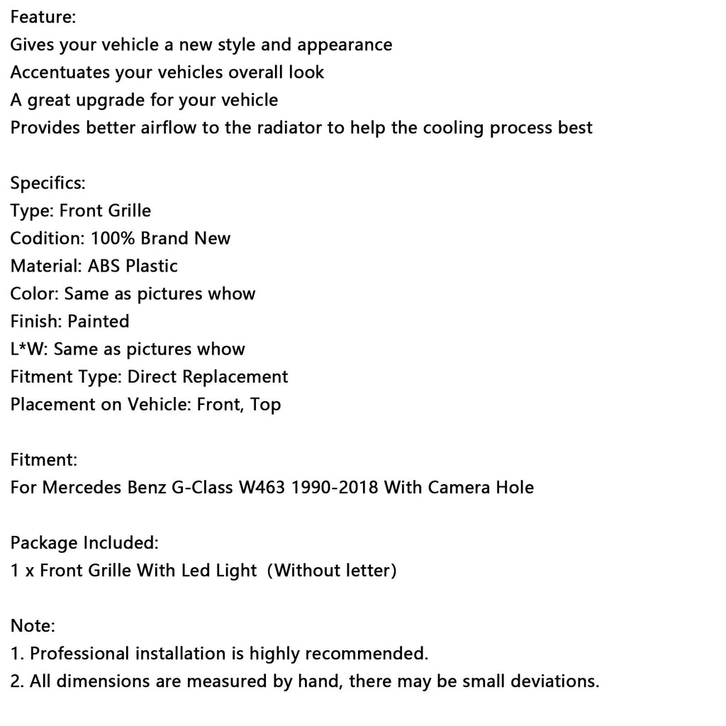 Musta kiiltävä etusäleikkö puskurille, sopii Mercedes Benziin W463 1990-2018, LEDillä
