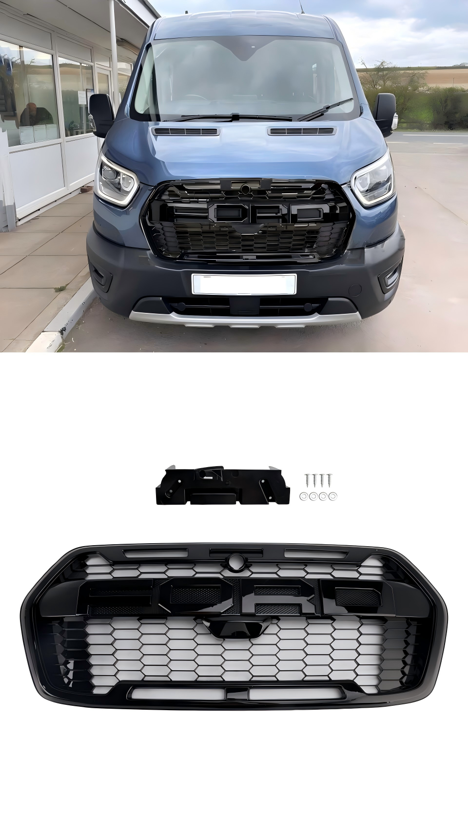 Kühlergrill für Ford Transit ab Baujahr 05.2019 Raptor Look Frontgitter Hochwertiger ABS-Kunststoff Glanzschwarz