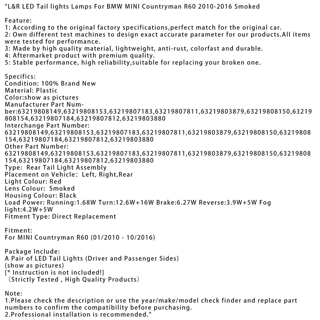 L&R LED-takavalot BMW MINI Countryman R60 2010-2016 savunväriset