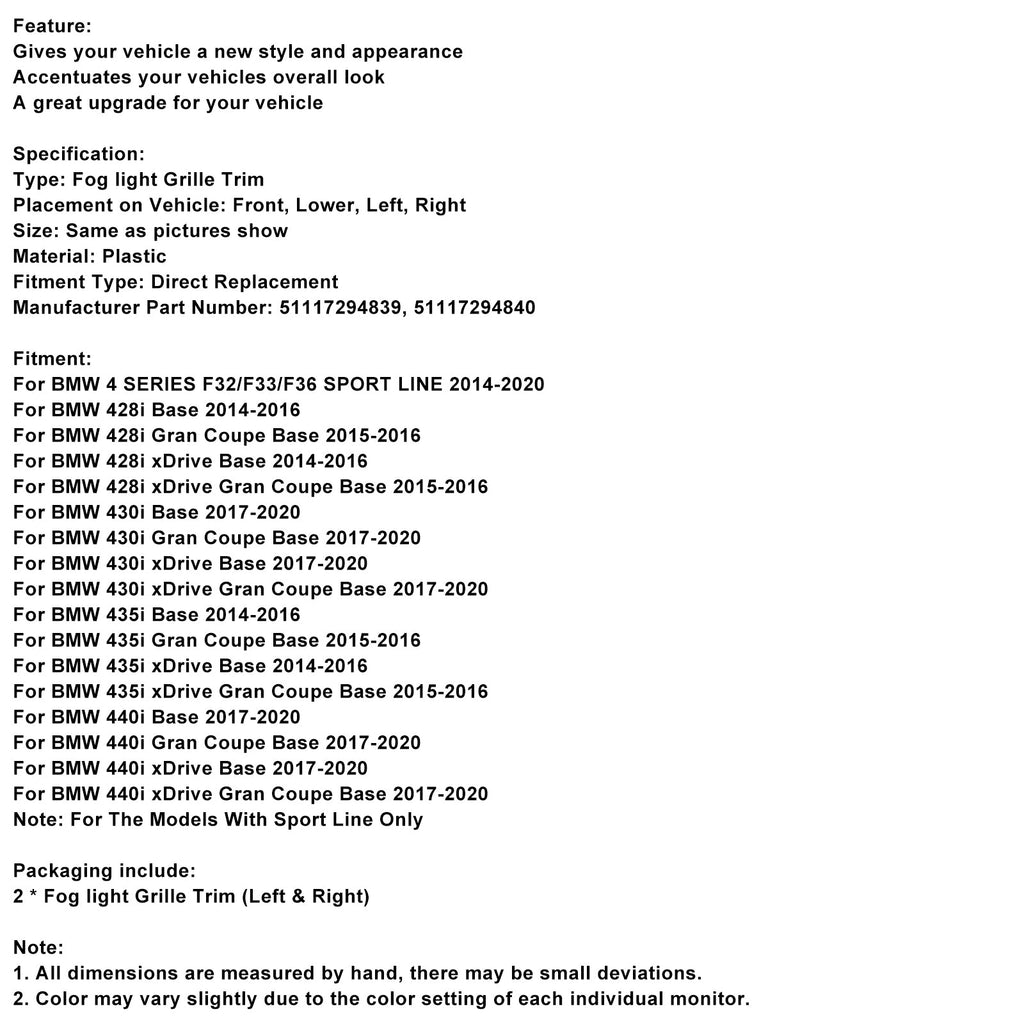 Links und rechts Nebelscheinwerfer Lünette Kühlergrill Frontstoßstange Trim Fit für BMW 428i F32 F33 F36