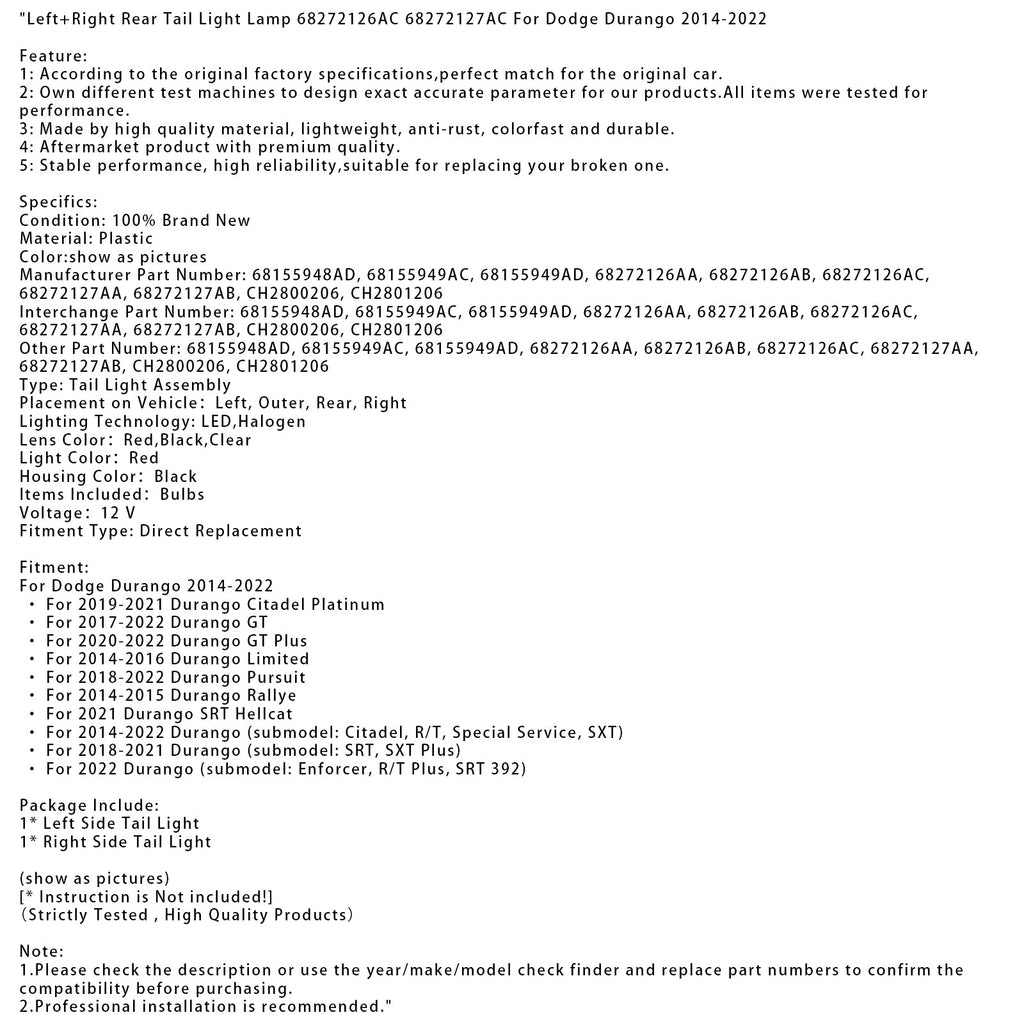 Rücklicht links + rechts 68272126AC 68272127AC für Dodge Durango 2014-2022