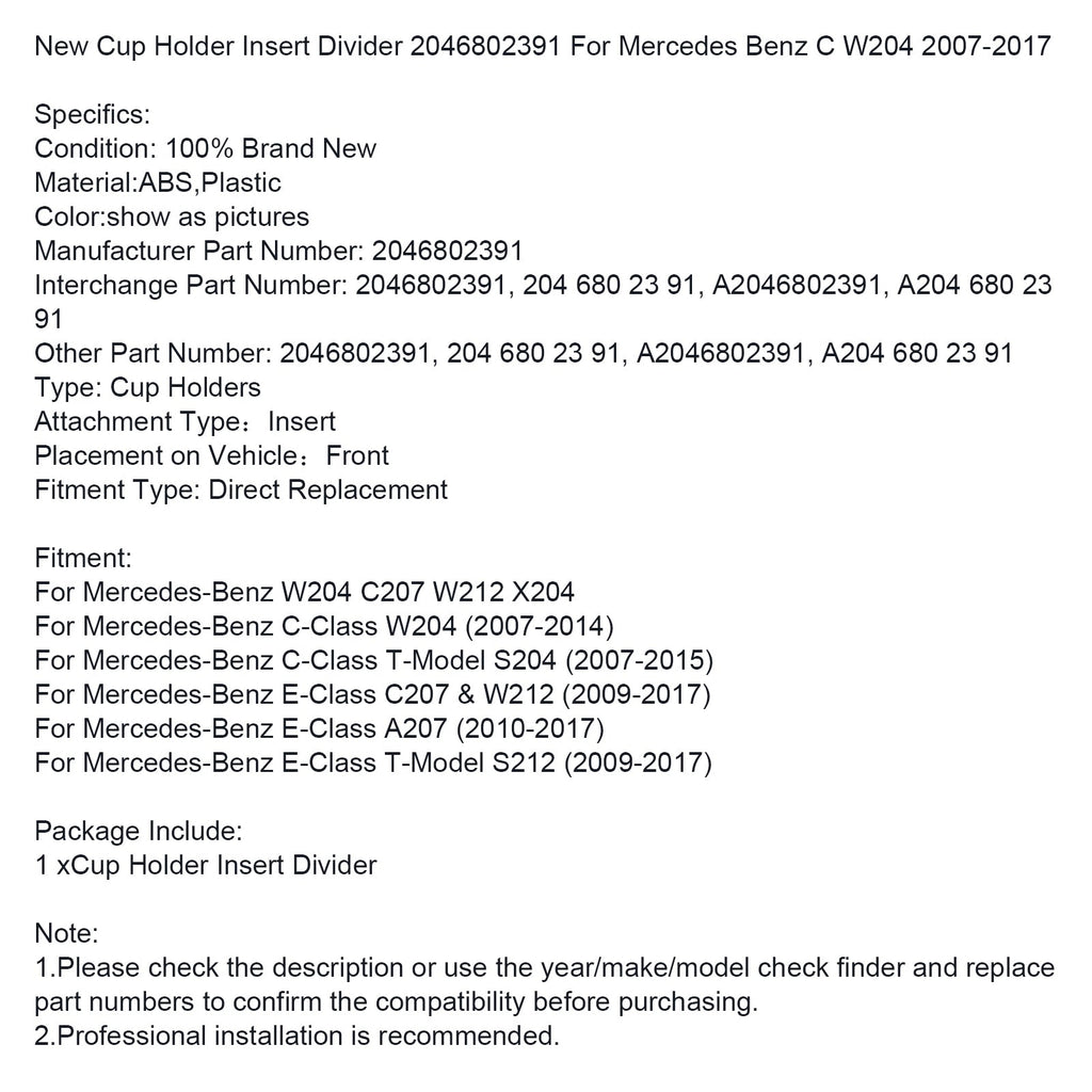 Neue Tasse Halter Einsatz Teiler 2046802391 Für Mercedes Benz C W204 2007-2017