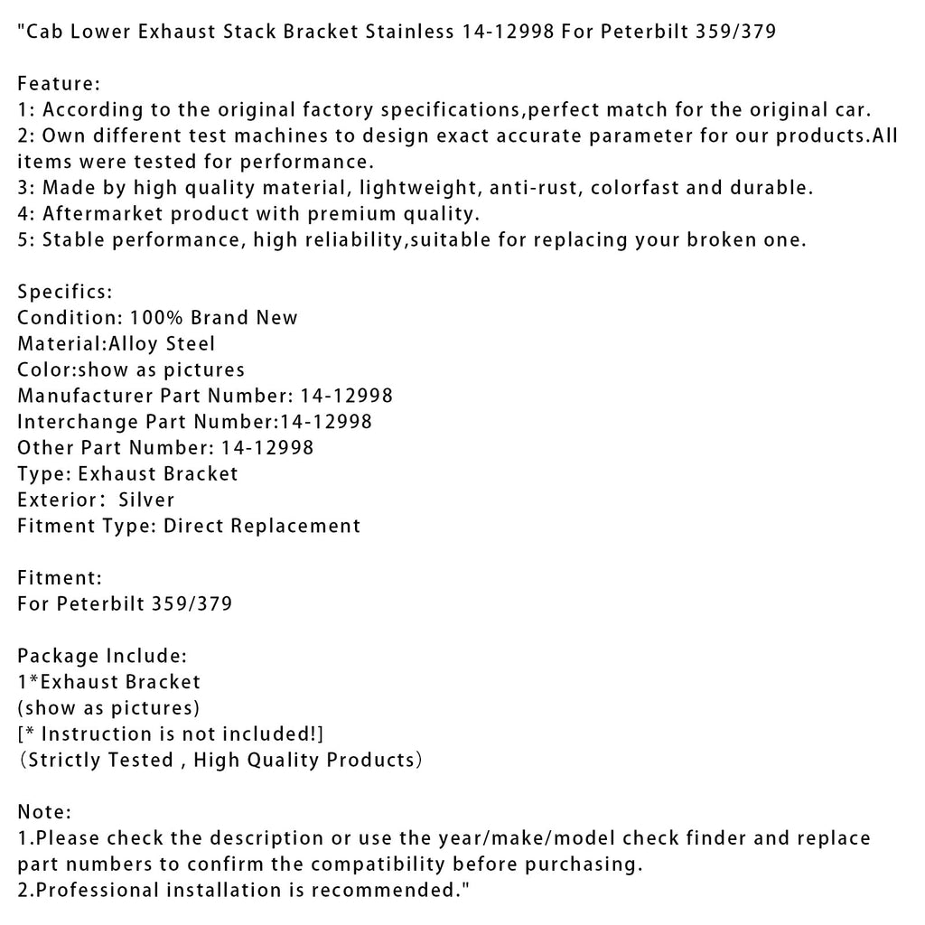 Ohjaamon alempi pakoputken kiinnike ruostumattomasta teräksestä 14-12998 Peterbilt 359/379:lle