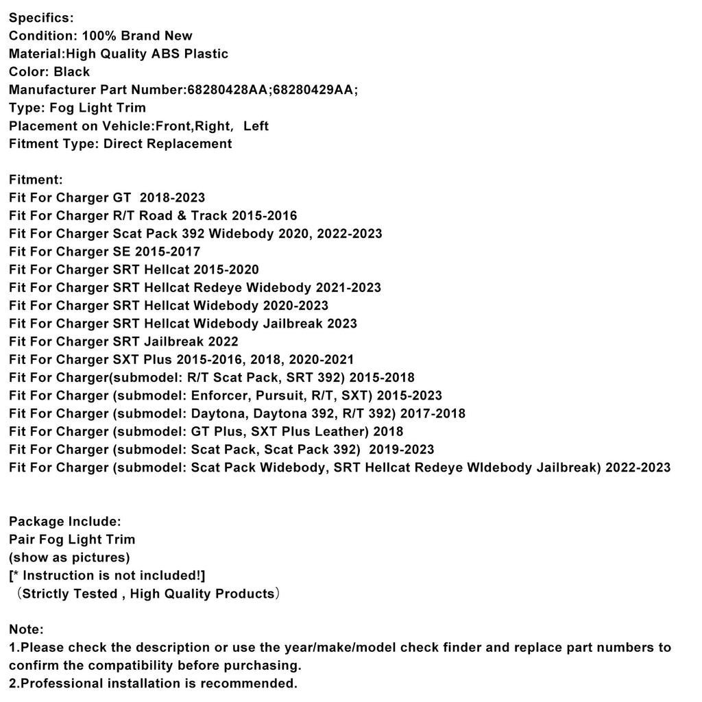 Paar Nebel Licht Lünette Für Dodge Charger 2015-2022 68280428AA