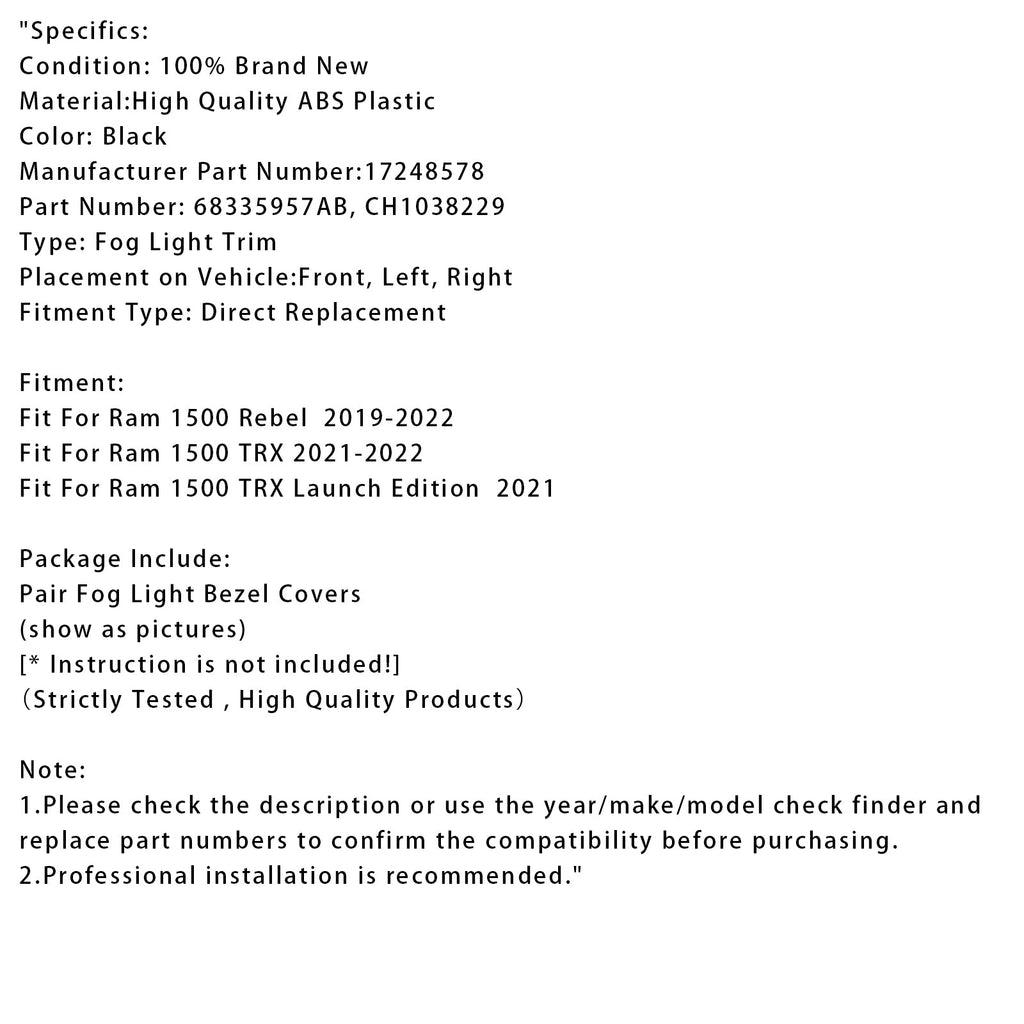 Pair Fog Light Trim Driving Lamp Frame Fit For Ram 1500 Rebel 2019-2022 68335957AB