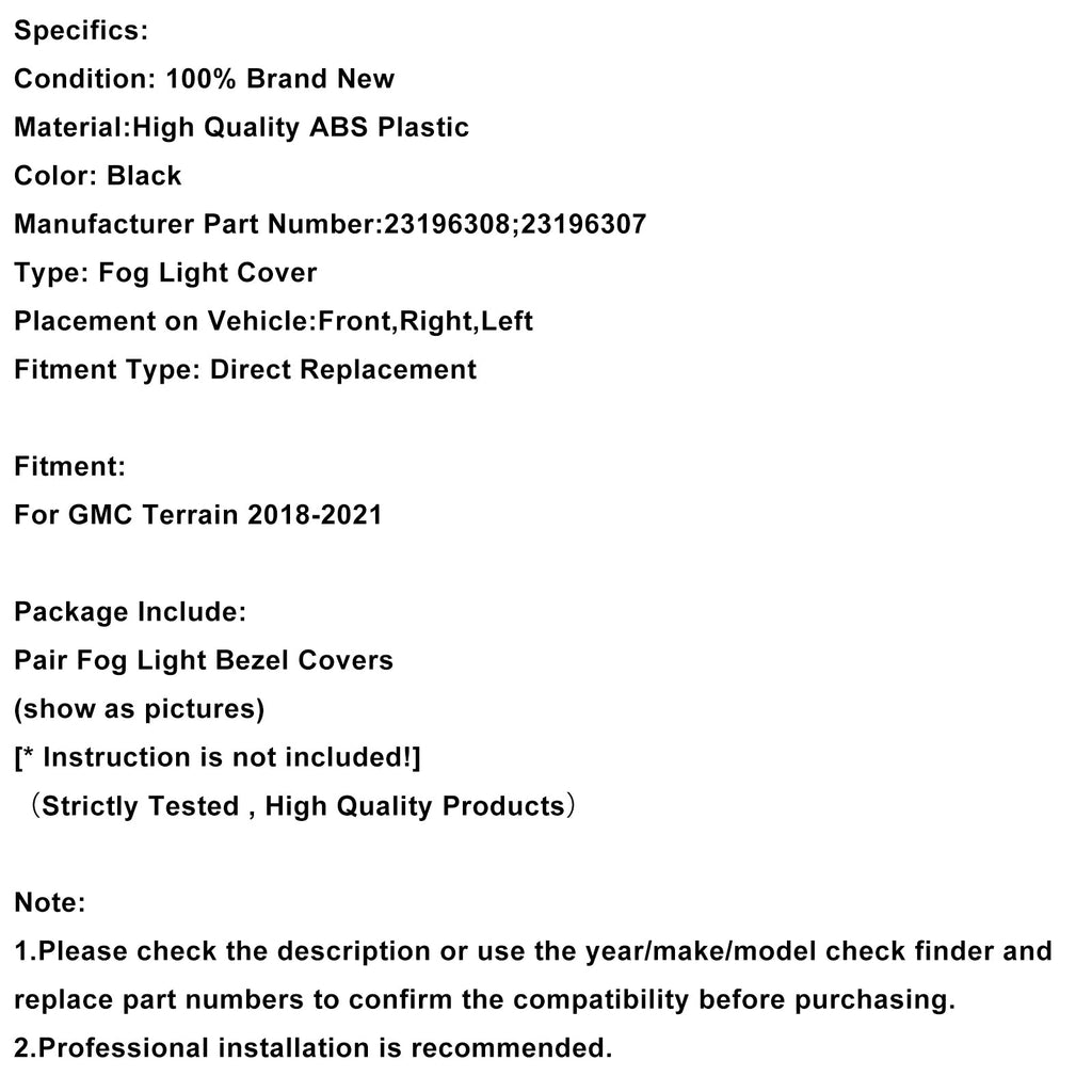 Paar Front Nebel Licht Lünette Trim Für GMC Terrain 2018-2021 23196308