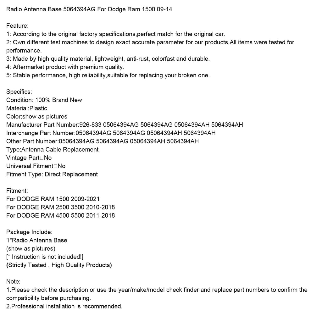 Radioantennenfuß 5064394AG für Dodge Ram 1500 09-14