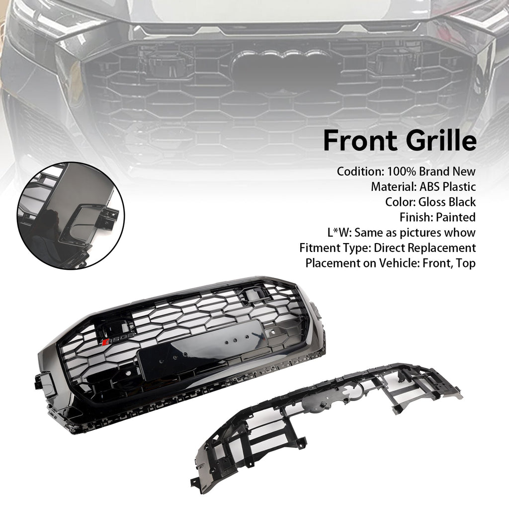 RSQ8 Style Gloss Musta edessä hunajakennoverkkosäleikkö sopii Audi Q8/SQ8 2019-2023